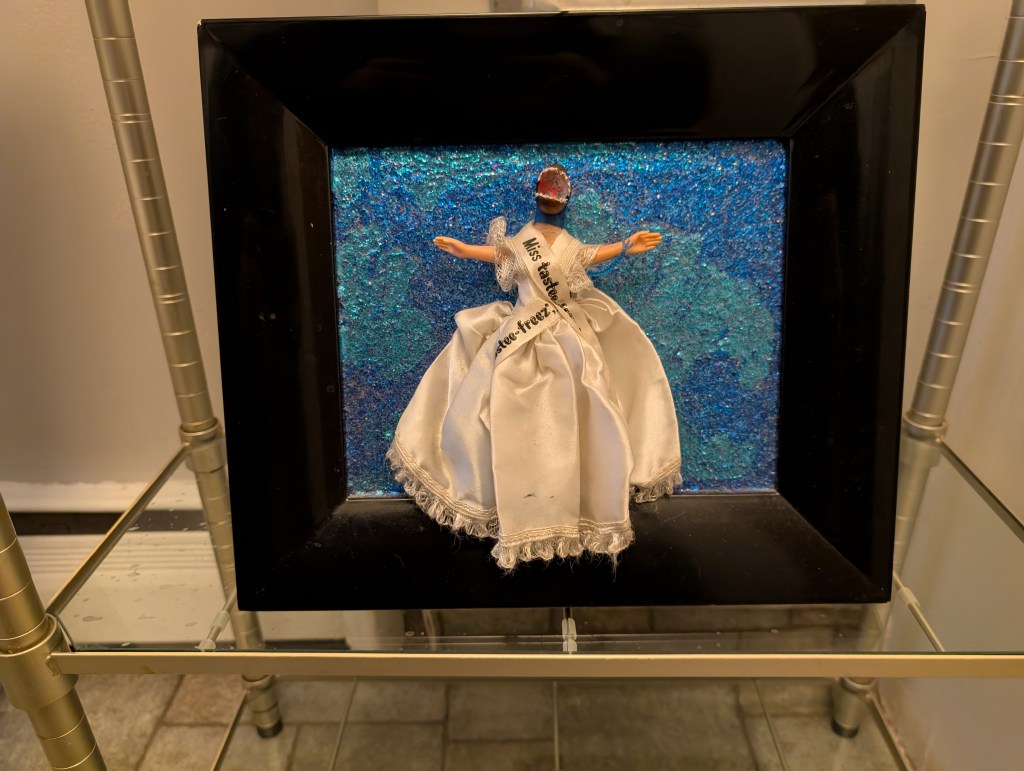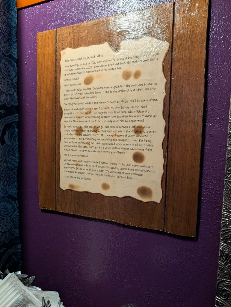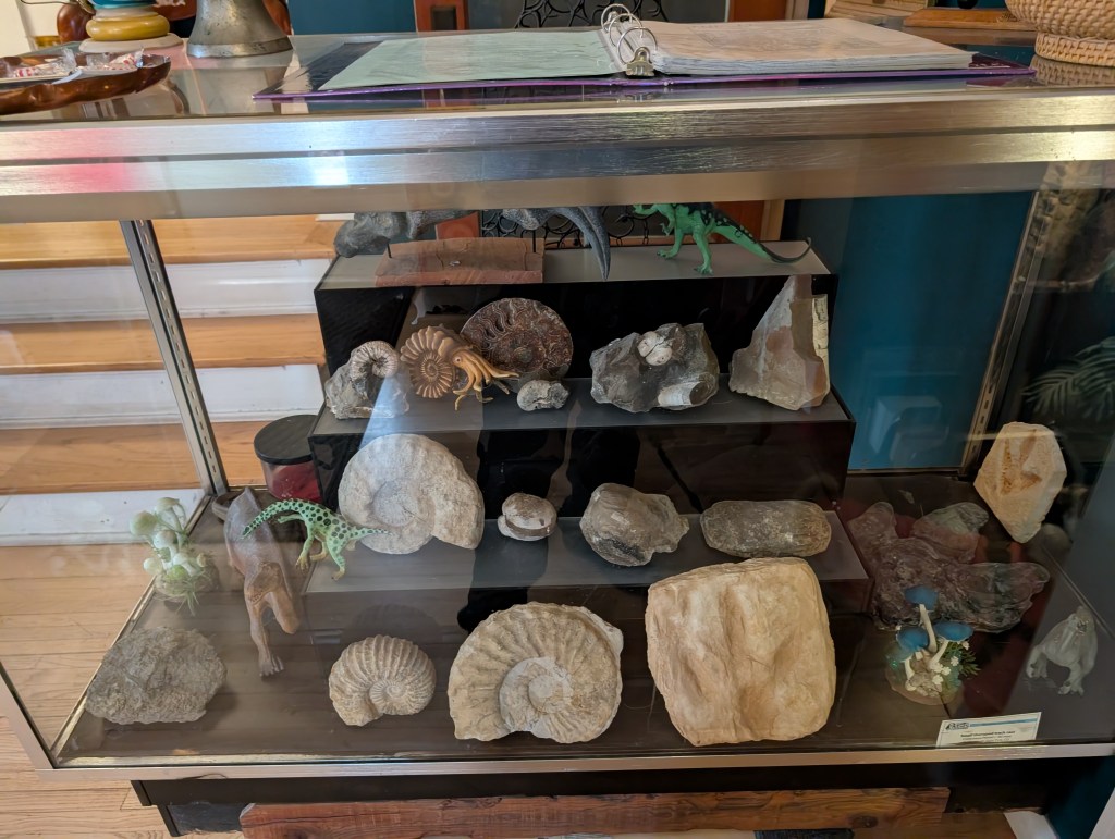 I was the first to explore; the first floor has fossils, gems, media (DVDs, VHSs, and books), Elvis, an old pinball machine, and all kinds of art. Outside is the hot tub, improvised art, and an animal enclosure. The kiddo loved the upright piano, multiple Elvis cutouts, the Bob Ross plushie, and finding art pieces we missed.