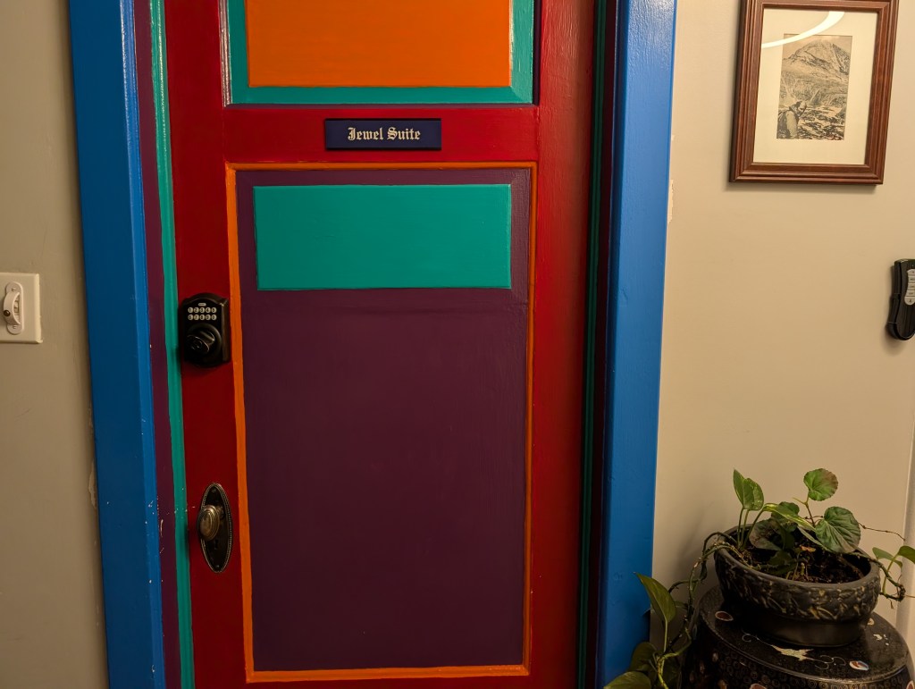 The Oasis on Eisenhower is a Museinn (museum + inn) featuring four themed rooms with seemingly endless art, artifacts, and history available for viewing. The building was originally built in 1904 as an orphanage on 200 acres! We booked the Jewel suite, which looked to me like royal quarters meets circus. It is colorful, fun, and exciting in and of itself. We got in late again and saved our exploring for the morning.