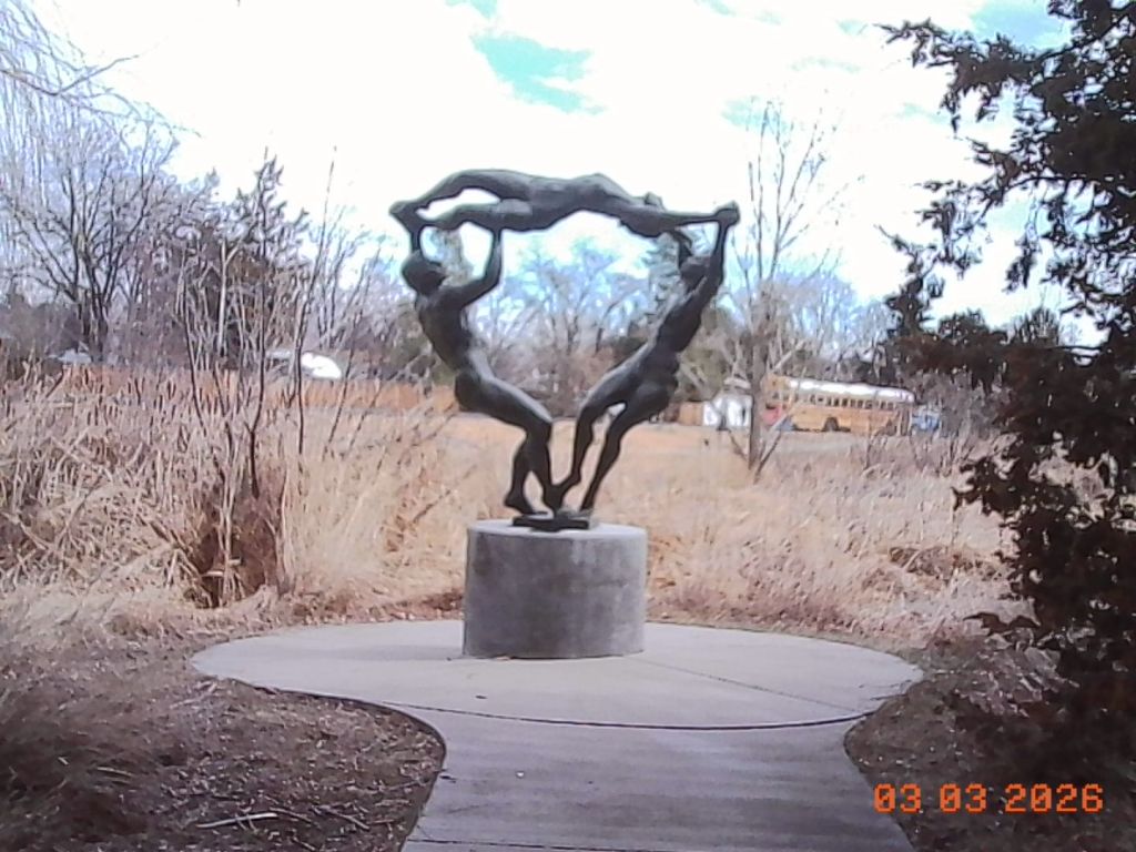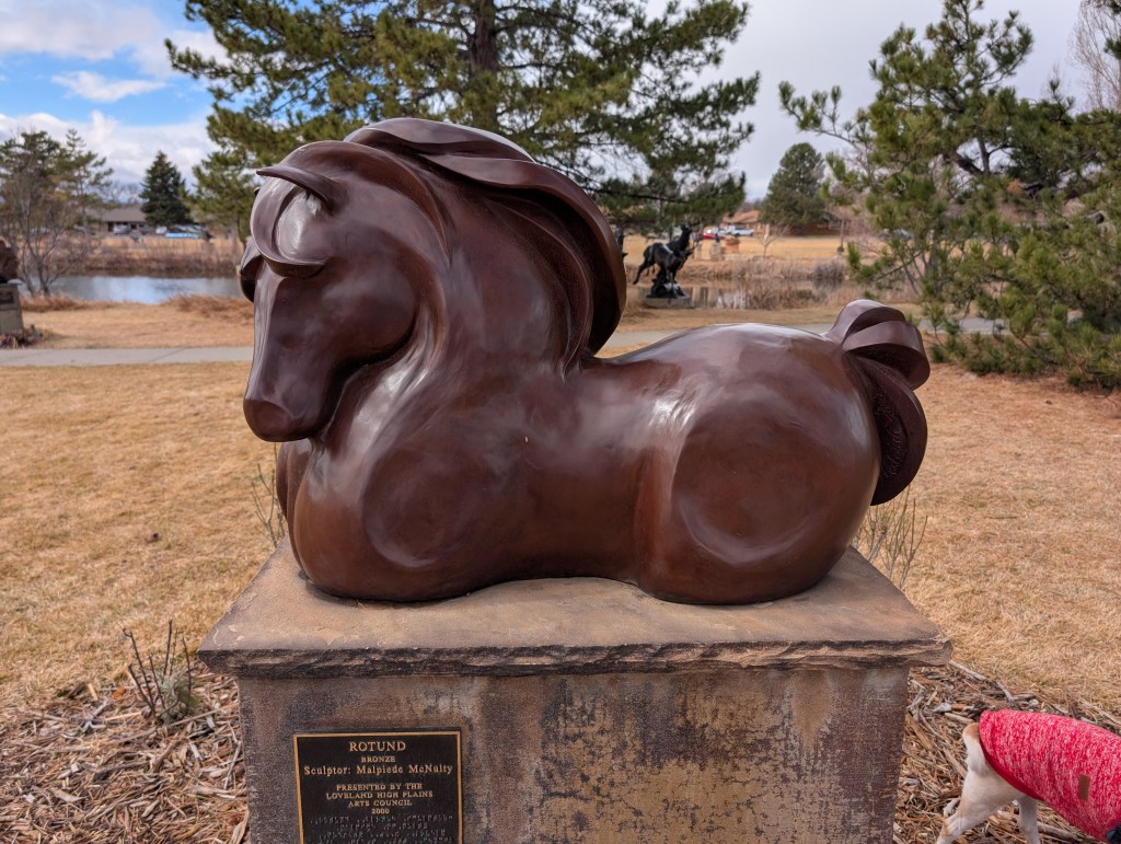 Benson Sculpture Garden was nothing short of spectacular, and we almost bounced between all the sculptures; we were so excited. It was originally a homestead and, over about 100 years, became the park it is today. It is named after Robert Benson, who with his son Ralph helped develop the Colorado Big Thompson project. This project helped develop water resources for Northern Colorado. The land being donated to the city for wetlands and a refuge for birds.