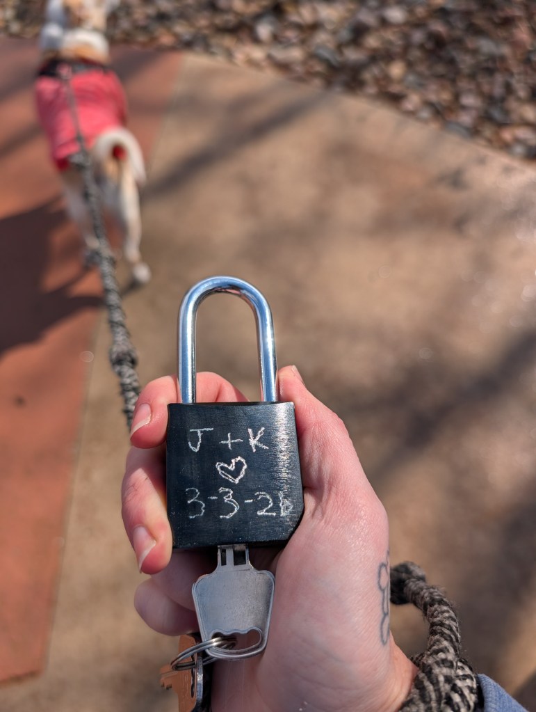 There are two places to “lock your love” in Loveland. We choose the community center because of its central location. The visitor center let us use their engraving tool, and now the love my son and I share is locked forever in Colorado.
